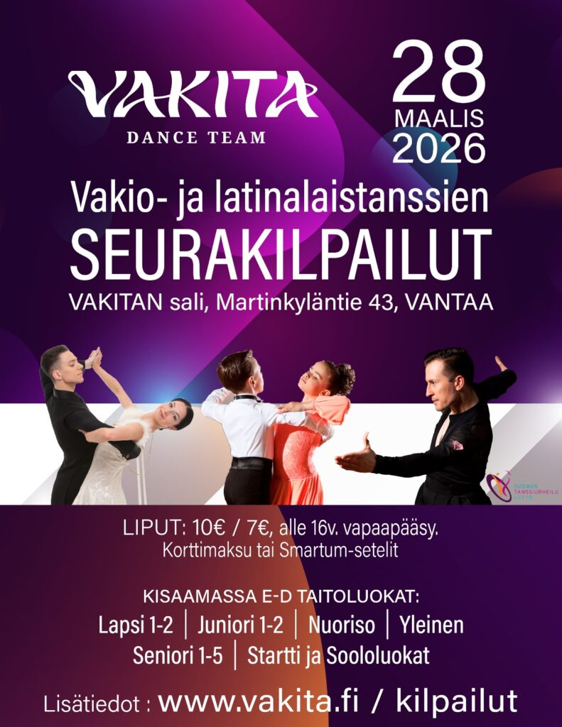 Dance Team Vakita kutsuu kaikki jäsenet ja jäseneksi itsensä tuntevat mukaan vuoden 2025 seurapäivään 10.8.2025! Seurapäivän aikana tietenkin tanssitaan eri valmentajien johdatuksessa sekä nautitaan yhdessäolosta. Päivän…