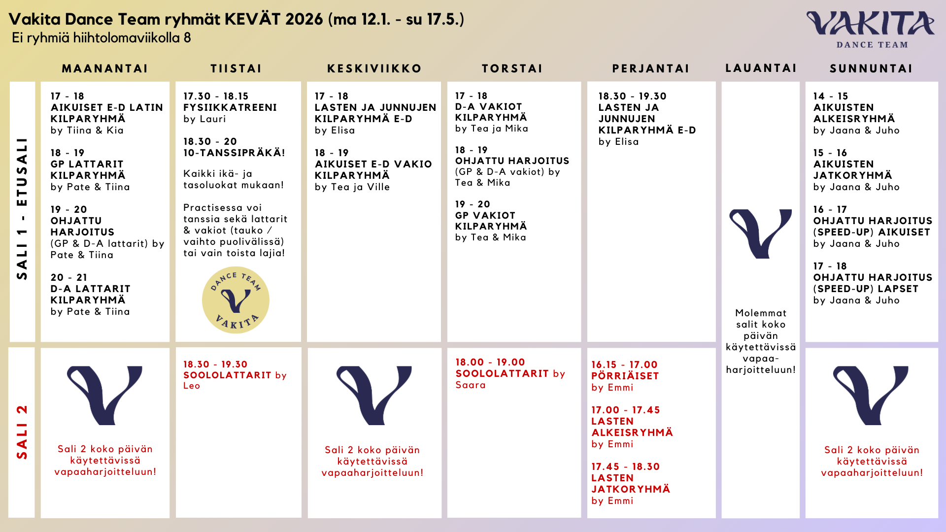 Perinteinen kevätjuhla järjestetään tiistaina 20.5 Vakitan salilla klo 18 alkaen. Luvassa toinen toistaan upeampia esityksiä, uusien tulokkaiden F-katselmus sekä kevätkauden SM-mitalistien juhlintaa mitalikahvien merkeissä. Kaikki ovat lämpimästi tervetulleita!