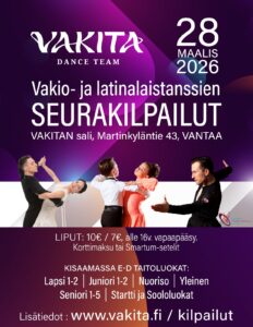 Dance Team Vakita ry kutsuu kaikki tanssiurheilun ystävät, kilpailijat ja yleisön kokemaan unohtumattoman kilpailutapahtuman 28.3.2026 Vantaalla.